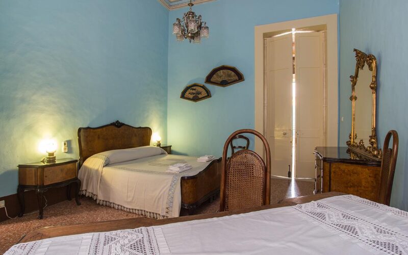 Le camere del B&B conservano i dipinti sulle volte e le tappezzerie delle pareti. I mobili antichi e la luce che entra dalle grandi finestre a balcone regalano un’atmosfera unica come un sogno.